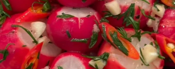 Aangezien het het seizoen is van zelfgemaakte radijsjes, is het een goed moment om deze vroege lentegroente toe te voegen aan je menu. Een video van ingemaakte radijsjes is viraal gegaan op sociale netwerken en veel gastvrouwen hebben deze trend al uitgeprobeerd in hun keuken. Kookblogger Kristin Azizyan deelde een beproefd recept voor ingemaakte radijsjes. Het is snel en gemakkelijk te bereiden en het is ongelooflijk lekker en smaakvol.
