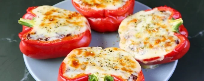 Als de gebruikelijke omelet en roerei saai zijn, maak dan dit eenvoudige, ongewone gerecht van eieren, worst en kaas in paprika.
