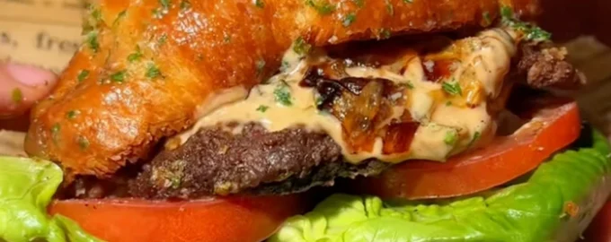 Het geheim is simpel, een croissant in plaats van een zwaar broodje, een romige mix van mayonaise, gekarameliseerde uien en augurken in plaats van de gebruikelijke saus, en het vlees is perfect gegrild, dun en sappig. Het is niet zomaar een burger, het is een burger voor mensen die van het leven met smaak houden. En het gedetailleerde recept voor de bereiding staat op de dampagina.